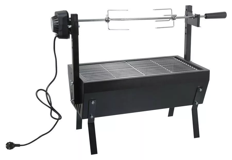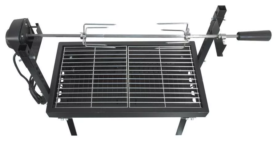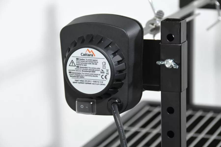 A grillt egy erőteljes motor egészíti ki 230 V-os tápegységgel az ételek 2 ford./perc sebességű megforgatásához. Legfeljebb 8 kg élelmiszer rakható a villákra - a motorra.