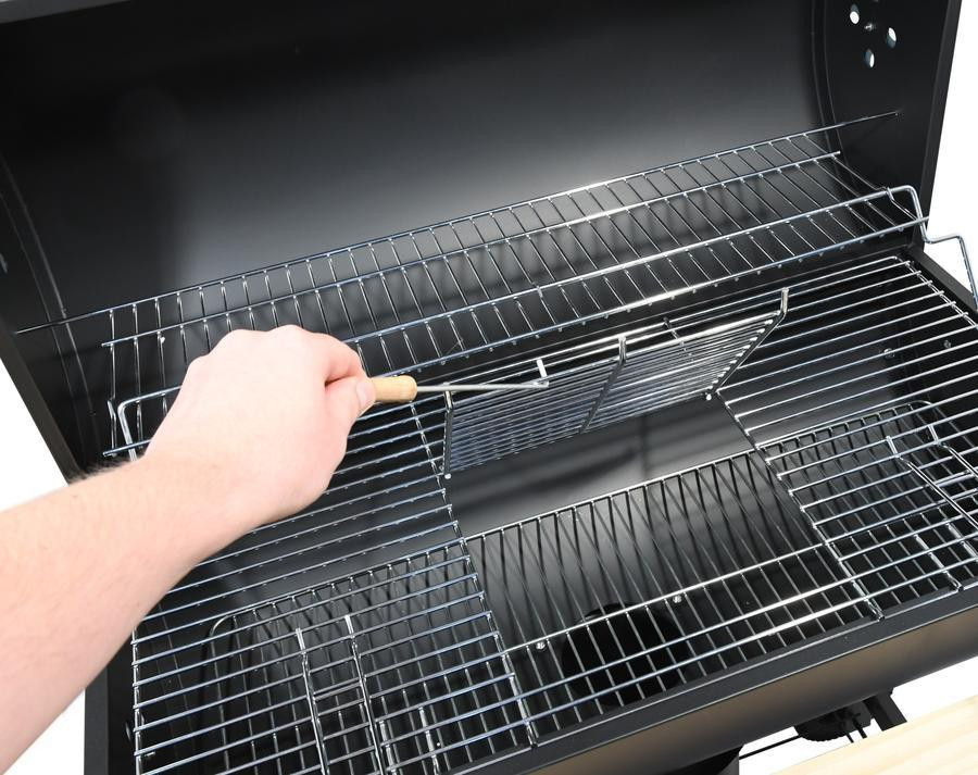 Ez a grill krómozott grillráccsal van felszerelve, a grill belsejében levegőkeringetéssel szabályozható, amely lehetővé teszi a grillezés szabályozását a fedél zárva. Alul egy kivehető hamutartó található, amely lehetővé teszi a hamu könnyű ürítését.