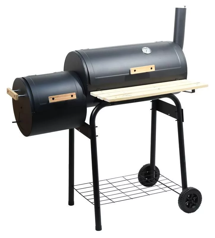 Kerti grill füstölővel, faszén szerkezetű.