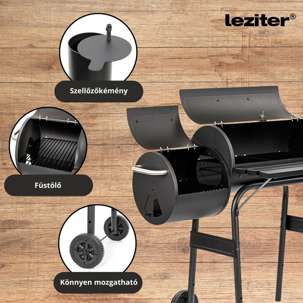 Leziter faszenes kerti grillsütő füstölővel szerelési útmutató