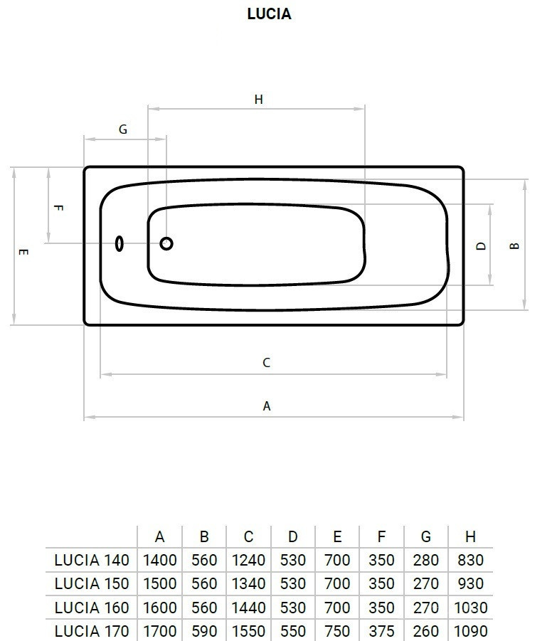 Lucia 150x70 cm-es egyenes akril kád, amely tükörsima kádbelsővel rendelkezik, valamint a belső kikepzésének köszönhetően kényelmes testhelyzetet biztosít. Minden fürdőkádunk fő jellemzője a magasfokú kényelem és a minőség.Minden kádunk műgyanta-üvegszálas erősítéssel van ellátva, így kádjaink kiemelkedő hőszigetelő képeséggel rendelkeznek. Kádjaink felülete kellemes, meleg tapintású köszönhetően a 4 mm vastagságú akril rétegnek.
