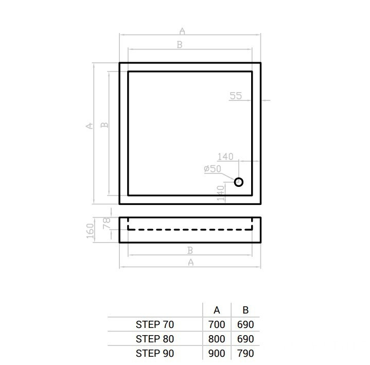 Favorit STEP zuhanytálca szögletes - szaniter akril - 80 x 80 cm