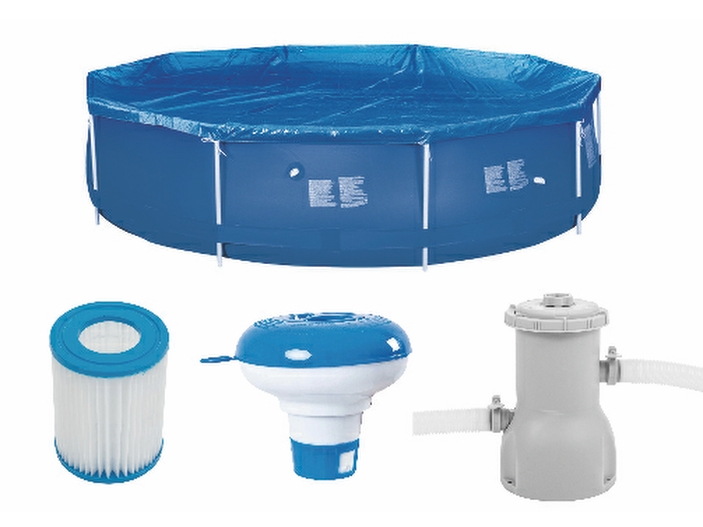 A medence hatékony szűrőszivattyúval van felszerelve, amelynek köszönhetően könnyedén tiszta vizet kap. A szivattyú 1 óra alatt megszűr 2006 l vizet. Az úszómedence szőnyege elszigeteli a talajtól, emellett rögzíti az alját a sérülésektől.