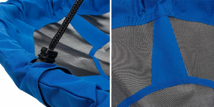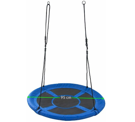 Átmérő: 95cm, keret: 25mmx1,5mm-4 rész, habborítás, kötelek: PE, állítható hosszúságú