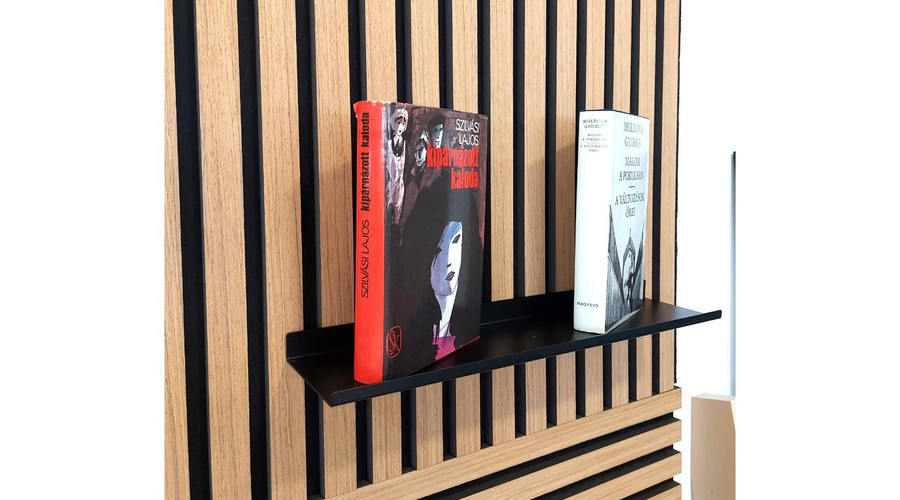 Az akusztikus falpanelekhez illő, könnyen rögzíthető kiegészítő elem, mely praktikus, egyedi megjelenésű polc.