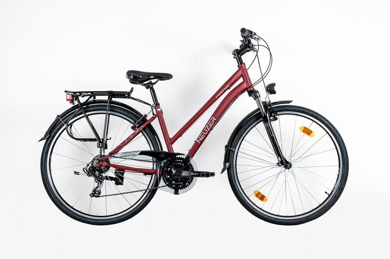 A Neuzer Firenze 50 nõi bordó/fehér 19 alumínium vázának köszönhetően könnyű és strapabíró választás városi közlekedéshez. A Suntour villa segíti a kényelmes testtartást és tompítja az úthibákat, míg az Alhonga V-fékek biztonságos fékezést biztosítanak. A Shimano Tourney váltórendszer precíz sebességváltást tesz lehetővé, így stabil haladás érhető el vegyes aszfaltos utakon is. A dupla falú Mach1 felnik és a széles, 700x40C méretű köpenyek extra stabilitást nyújtanak minden mindennapi használat során.