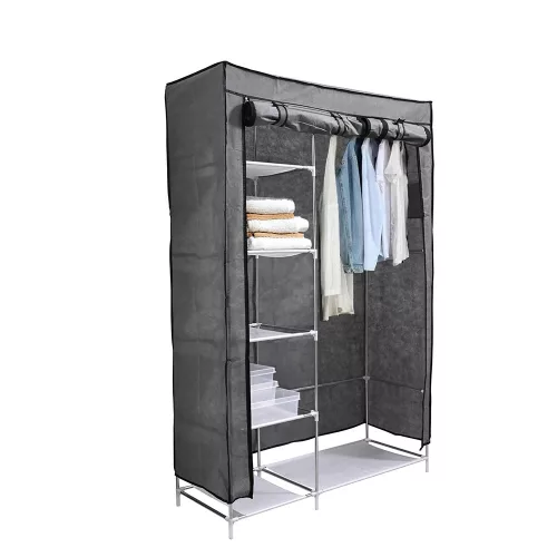Ez a hordozható szekrény fém szerkezettel és poliészter borítással ideális megoldás a ruhák és kiegészítők rendszerezett tárolására. A levegő áramlását biztosító szövet borítás megóvja a ruhákat a portól és nedvességtől, miközben a masszív fémváz biztosítja a szekrény stabilitását és tartósságát. Az egyszerű összeszerelés és a könnyű hordozhatóság révén az LGSZ-01 gardróbszekrény kiváló választás mindazok számára, akik rugalmas és megbízható tárolási megoldást keresnek otthonukba.