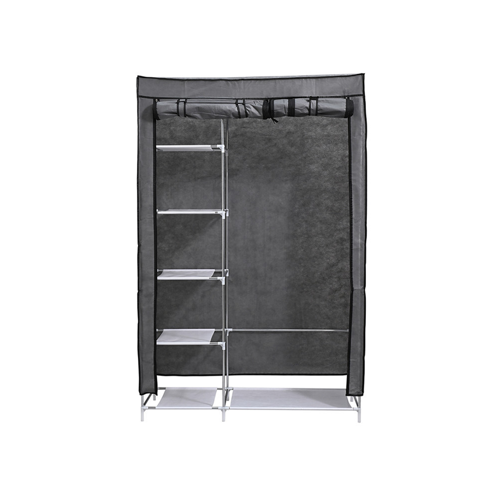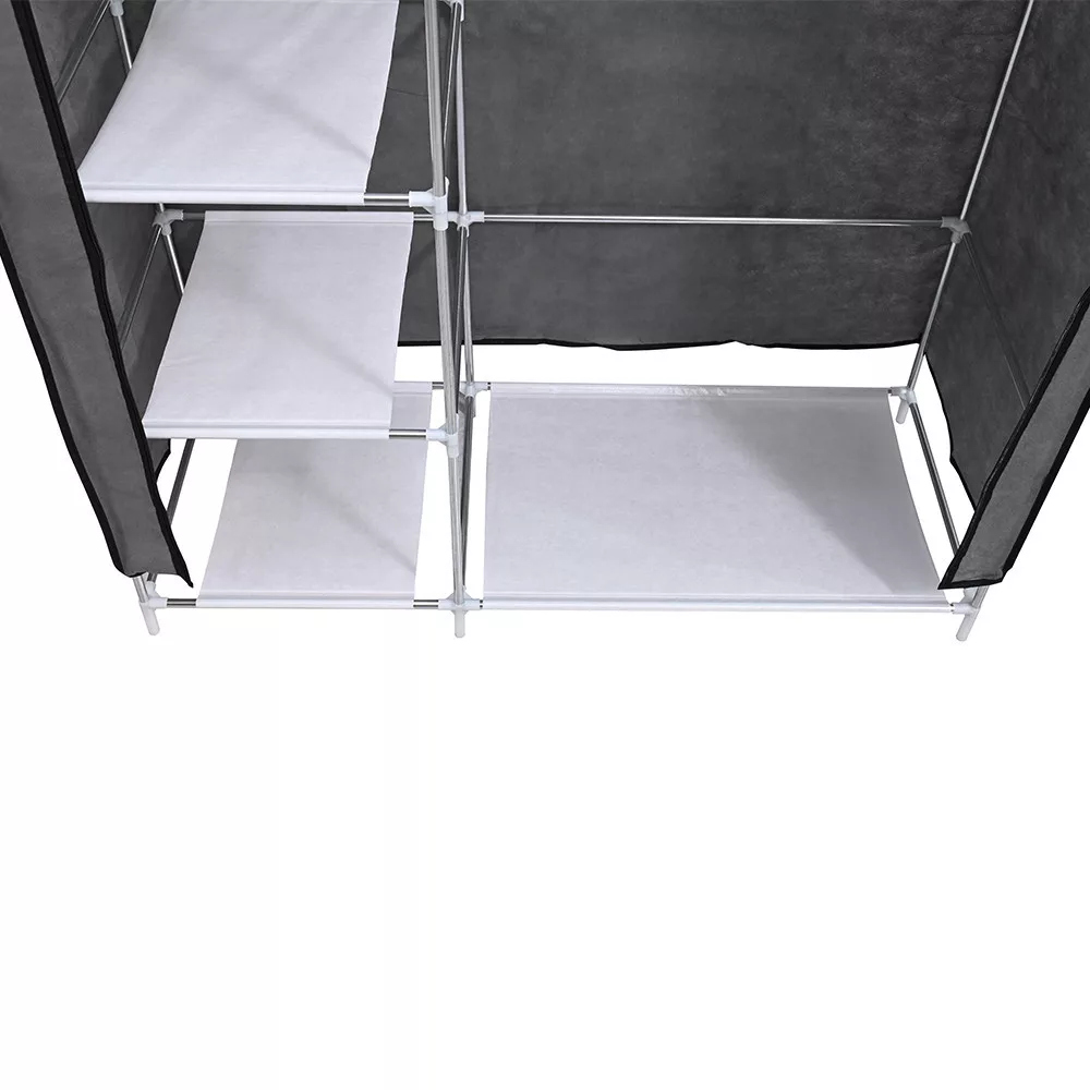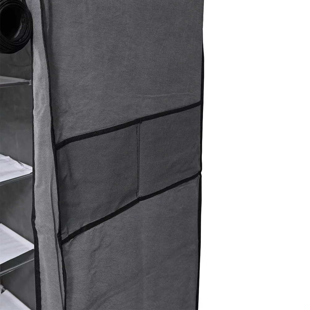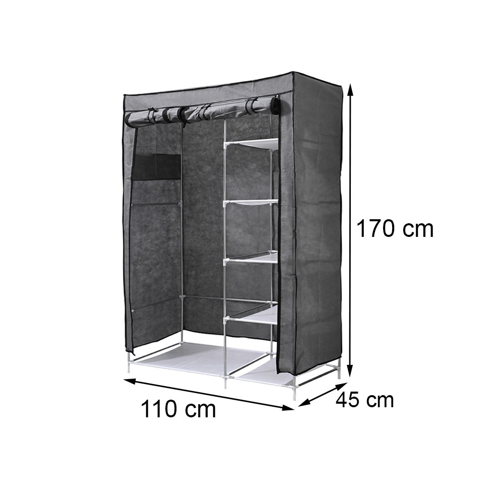 • Anyag: Tartós fémváz és magas minőségű poliészter szövetborítás, amely ellenáll a mindennapos használatnak, és megóvja a ruhákat a portól és szennyeződéstől. A fém szerkezetet műanyag rögzítőelemek erősítik meg, biztosítva a szekrény stabilitását.