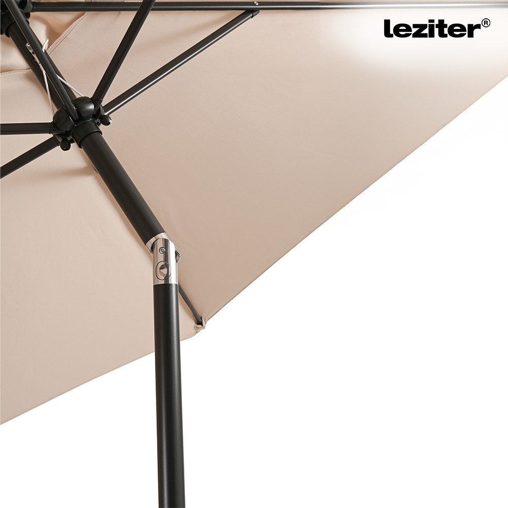 A piacon kapható napernyők gyakran nehezen kezelhetők, és a magasság vagy a dőlésszög állítása körülményes lehet. A Gina napernyő ezzel szemben kurblis emelőmechanikával rendelkezik, így egyetlen mozdulattal könnyedén kinyitható és zárható. A dönthető funkció lehetővé teszi, hogy az árnyék mindig ott legyen, ahol szükség van rá, így a napszak változásával könnyen beállítható. A Leziter Gina kerti napernyőhöz tökéletes kiegészítő a Leziter napernyőtalp 20 L termék.