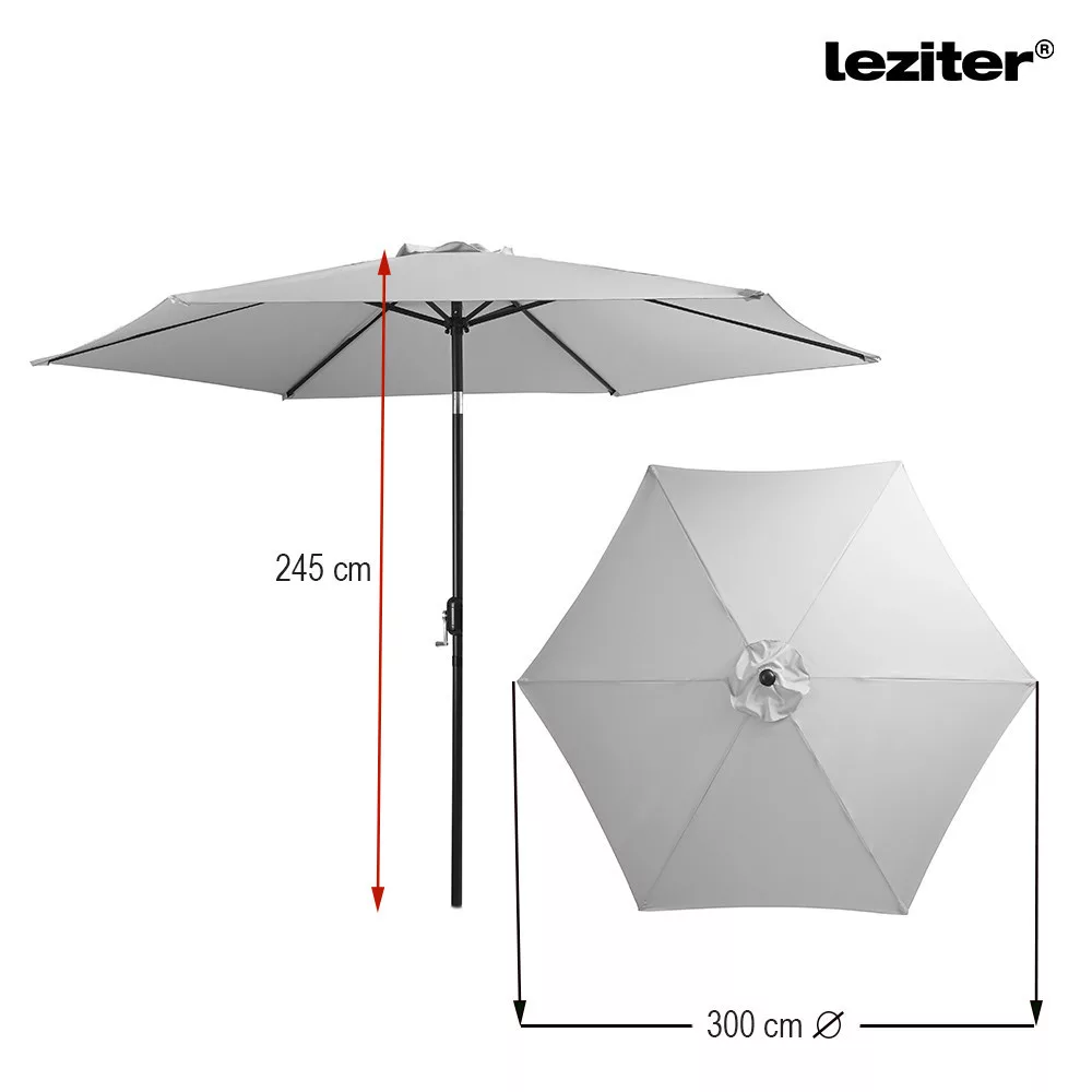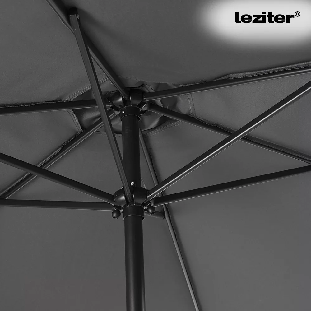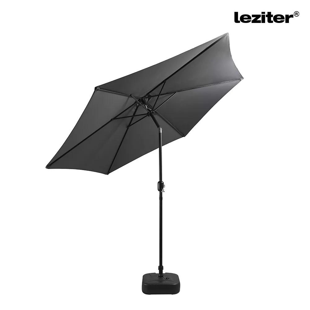 A piacon kapható napernyők gyakran nehezen kezelhetők, és a magasság vagy a dőlésszög állítása körülményes lehet. A Gina napernyő ezzel szemben kurblis emelőmechanikával rendelkezik, így egyetlen mozdulattal könnyedén kinyitható és zárható. A dönthető funkció lehetővé teszi, hogy az árnyék mindig ott legyen, ahol szükség van rá, így a napszak változásával könnyen beállítható. A Leziter Gina kerti napernyőhöz tökéletes kiegészítő a Leziter napernyőtalp 20 L termék.
