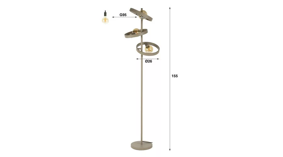 A HOVER állólámpa fémből készült, antracit vagy bézs színben. A kialakítás kör alakú fémkeretekből áll, amelyek körülveszik a fényforrásokat, így ipari és modern megjelenést biztosítanak. A HOVER tökéletesen illik kanapé, fotel mellé, vagy a nappali sarkába, hangulatos kiegészítőként a belső térhez. A legjobb fényhatás érdekében LED izzó használata ajánlott. Ez az állólámpa a HOVER sorozat része.