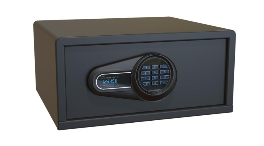 A Hotel széf H0402M egy masszív acélból készült biztonsági eszköz, amely kifejezetten a szállodai és vendéglátóipari környezetekben történő használatra lett tervezve. Elektronikus számzáras működésének köszönhetően egyszerűen kezelhető, ugyanakkor biztonságot nyújt a kisebb értékek, készpénz vagy személyes tárgyak tárolására. A széf könnyedén rögzíthető a talajhoz vagy falhoz, ami megnehezíti az illetéktelen eltulajdonítást. Ideális megoldás hosszabb tartózkodásokhoz vagy üzleti utak során felmerülő értékmegőrzési igényekhez.