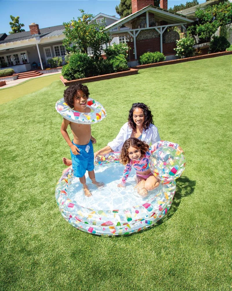 A színes Intex® 59460 Just so fruity nyári gyümölcsmotívumokkal díszített medence könnyen kicsalogatja a gyermekeket a házból a napfényre. Minosége és tartóssága elozetes tesztelésen esett át, hogy kibírja a különféle gyermekjátékokat a vízben. Ez a sokszínu felfújható kis medence tökéletes hely minden 2 évnél idosebb gyermek számára, akik a kánikula idején is játszani akarnak. A csomag egy felfújható labdát és egy úszógyurut is tartalmaz a medencével megegyezo kivitelben. Méretek: 1,22 x 0,25 m.