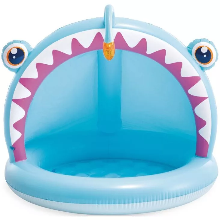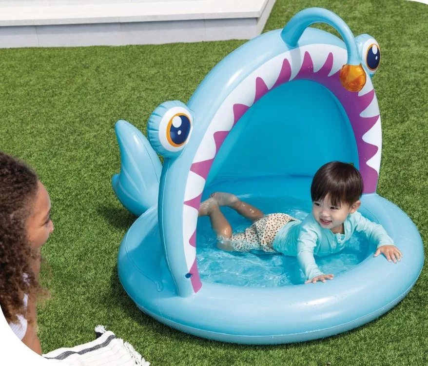 Angler Fish gyermekmedence napellenzővel, amely kiváló minőségű anyagból készült a legújabb trendek szerint tervezve. Az hal formájú medence ideális a gyermekek kerti játékához. Biztonságos, strapabíró szerkezet. A medence további előnye az árnyékoló tető és a puha fenék, amely magas használati kényelmet biztosít. 1-3 éves gyermekek számára készült (felnőtt felügyelete mellett).