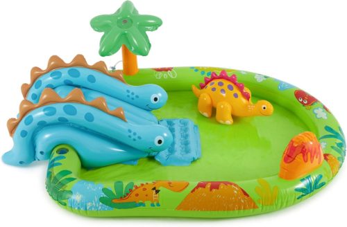 Az Intex 57166 Dinosaur medence játszóközpont 2 éves kortól alkalmas gyermekek számára. Tartalmaz egy csúszdát és számos egyéb játékelemet. A medence űrtartalma 143 liter, a medence alján egy leeresztő dugó található.