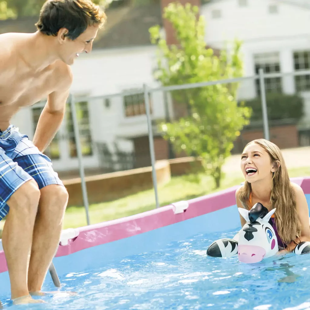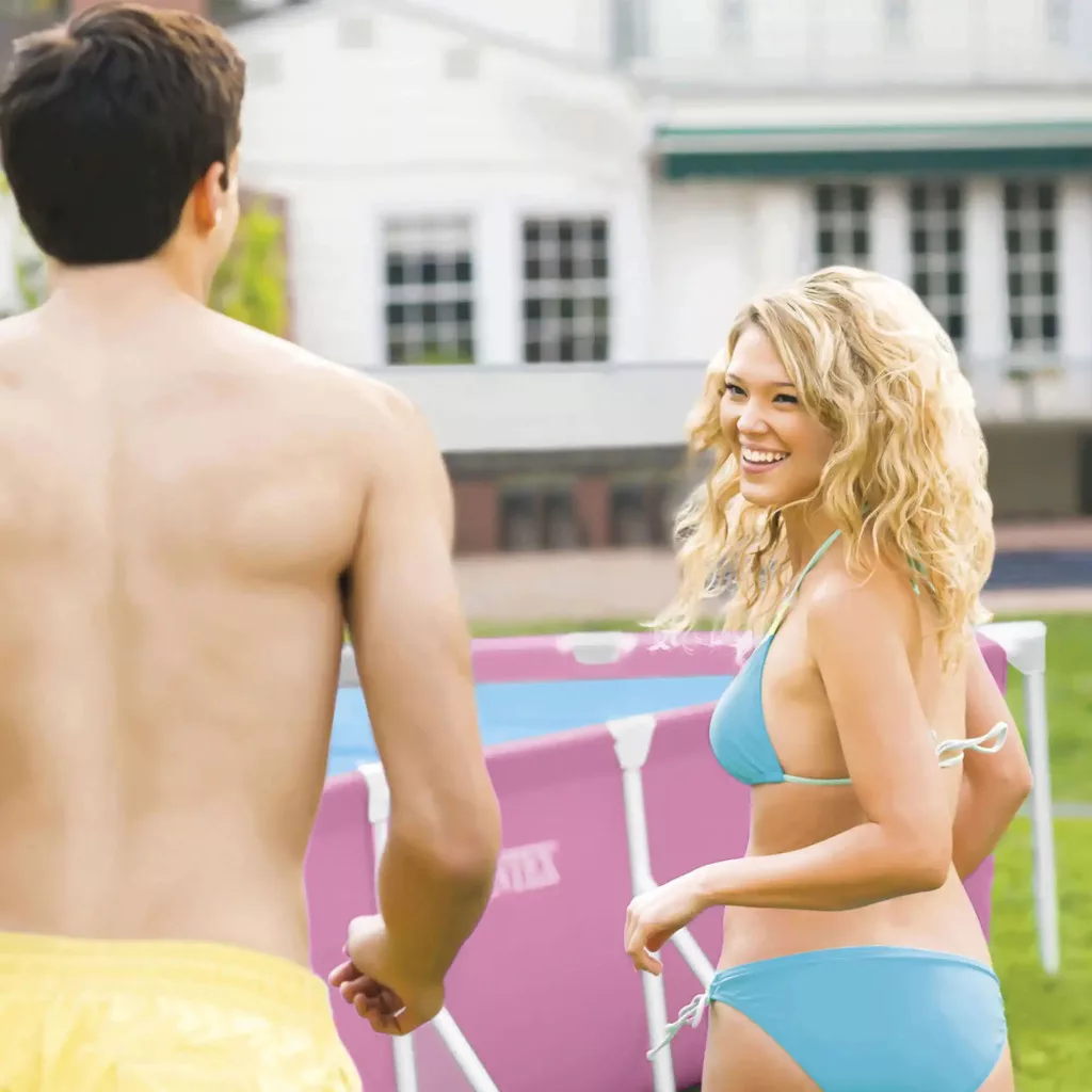 Szinterezett fémvázas medencetest, vízforgató nélkül. Az erős PVC medence testet csőváz tartja, amelyek a testen kialakított füleken keresztül tolva merevítik a szerkezetet. A medencetest tartalmazza a bekötőcsonkot. Javasolt vízforgató: Intex i28602 vagy i28604.