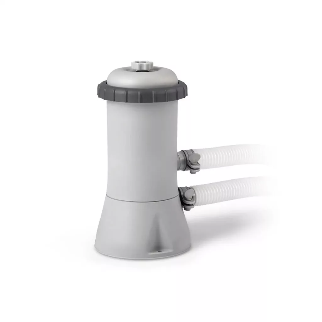 Szinterezett fémvázas medencetest, vastag és extra tartós 3 rétegű szálerősített fóliával, 2 m³/h teljesítményű papírszűrős vízforgatóval. Az erős PVC medence testet csőváz tartja, amelyek a testen kialakított füleken keresztül tolva merevítik a szerkezetet.