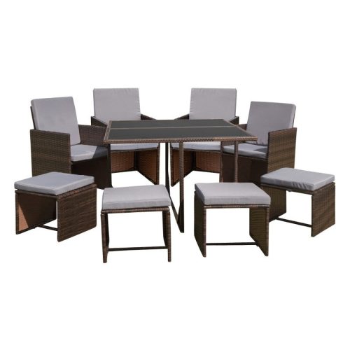 8 fős kerti bútor készlet. Tökéletes kert, terasz vagy akár egy nagyobb erkély számára. Összecsukva kevés helyet foglal el, így könnyedén tárolhatja.