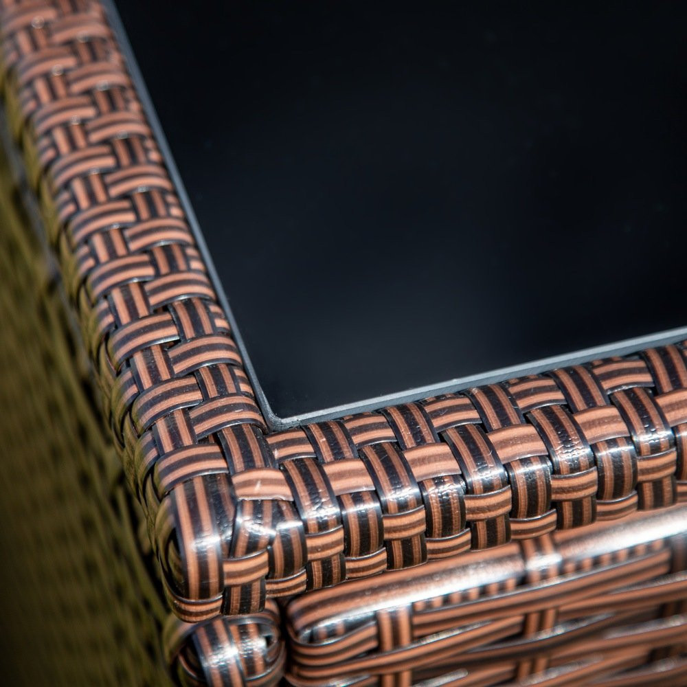 • Puffok és fotelek technoratánnal fonott acélból, sötétbarna színben