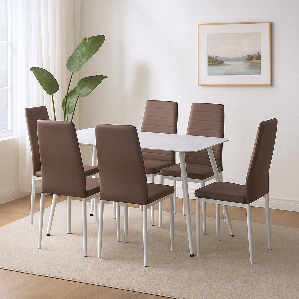 Jenna 6+1 étkezőgarnitúra – barna dizájn, fehér kontraszt, letisztult karakter
