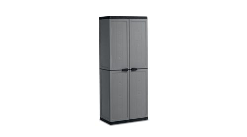 A Jolly műanyag tároló szekrény magas praktikus tárolási megoldást kínál garázsok, erkélyek és fedett helyiségek számára. Az állítható polcok lehetővé teszik különböző méretű eszközök rendszerezését, miközben a könnyű összeállítás egyszerű használatot biztosít. Kiváló választás hosszú távú tárolási igényekhez, például kerti szerszámok vagy háztartási kellékek elhelyezésére.