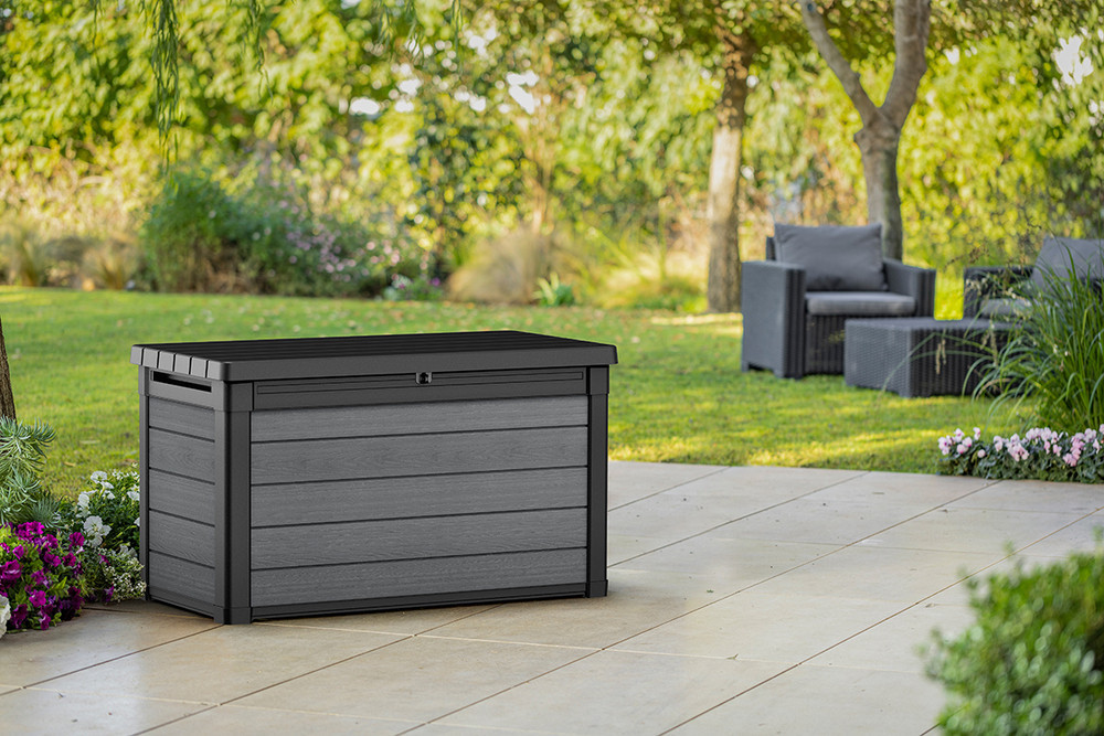 A CORTINA tárolódoboz ideális megoldás a kertben kéznél lévő tárgyak rendszerezésére. Kiválóan alkalmas nagyobb párnák, kerti kiegészítők vagy sportfelszerelések tárolására.