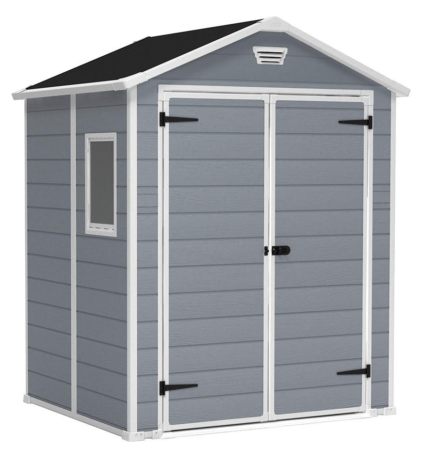 Keter Manor 6x5 DD műanyag kerti ház, tároló ablakkal - szürke/fehér