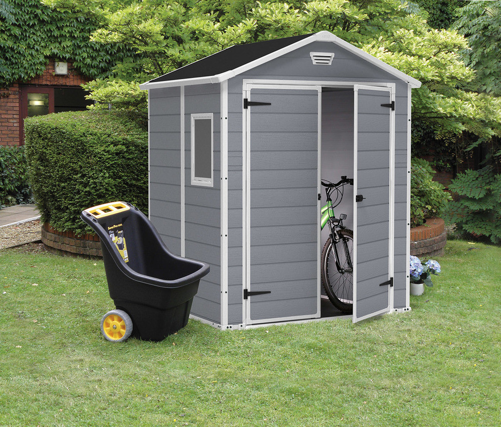 A karbantartásmentes MANOR 6x5 ház mindennel rendelkezik, amivel egy kerti tárolónak rendelkeznie kell, ráadásul még stílusos is.