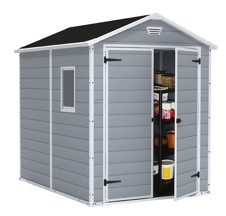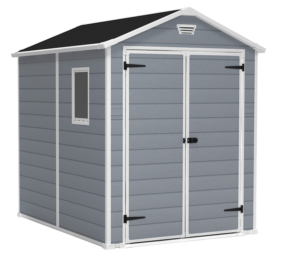 Keter Manor 6x8 DD műanyag kerti ház, tároló ablakkal - szürke/fehér