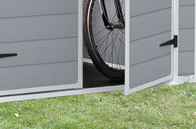 A fém megerősített keret és a lakat segítségével biztonságosan tárolhatja kerti szerszámait és eszközeit.