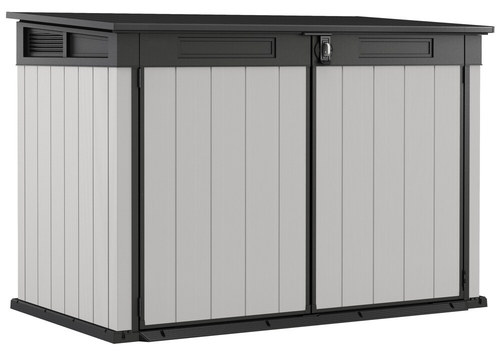 Belsőben is könnyen tárolható: grillsütő, párnák, öntözőkannák, virágcserepek, játékok és sok más tárgy. Ideális választás kukák tárolására. A szekrénybe három 240 l űrtartalmú szemetes fér el, a csomag láncokat is tartalmaz, aminek köszönhetően a kukák fedele a szekrény fedelével együtt nyílik. Szellőztetés is be van építve a szagok elkerülése érdekében.