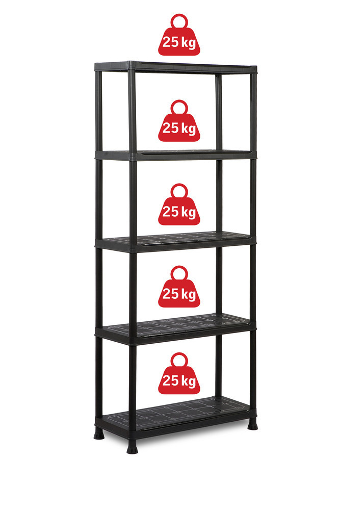 - az 5 polc mindegyike akár 25 kg-ot is elbír