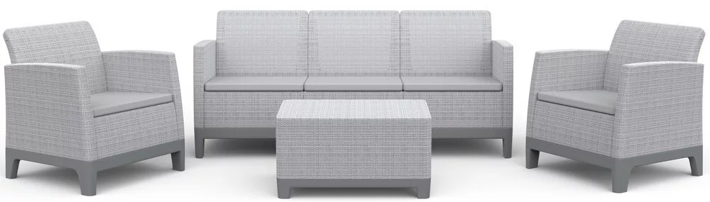 Keter SCANDI FORMA 3 személyes kerti bútor szett – 5 fős, sofa + 2 fotel + tárolós asztal, Ash grey / Storm grey