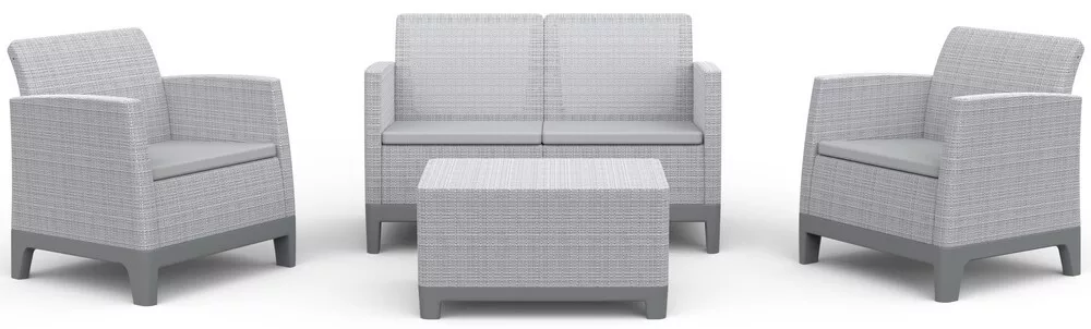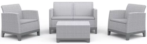 Keter SCANDI FORMA kerti bútor szett – 4 személyes, sofa + 2 fotel + tárolós asztal, Ash grey / Storm grey