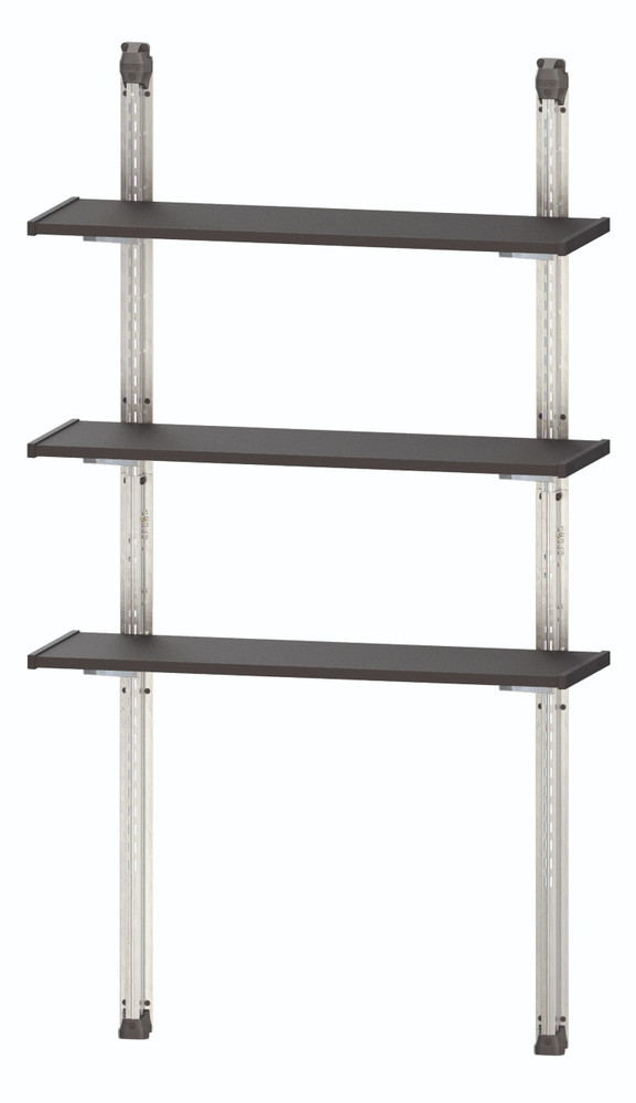 Eleged van abból, hogy a Keter házban tárolt holmik egy kupacban hevernek a földön? Szerezz be egy praktikus egy polckészletet. A horganyzott acél síneket a ház falára szerelheted fel. Magasságát igény szerint 169 és 181 cm között állíthatod.