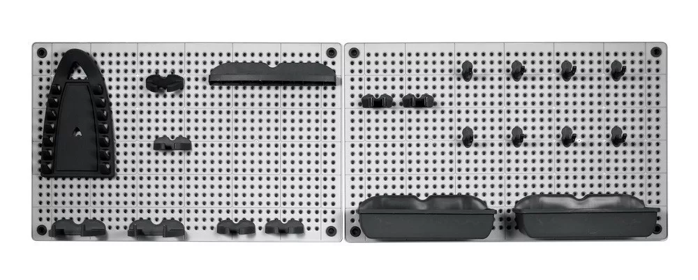 A csomag tartalmaz két darab szerszámtartó táblát és kiegészítőit.