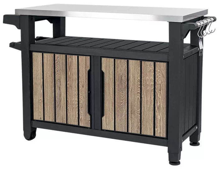 Keter UNITY XL műanyag kerti grill asztal – 207 L, kőrisfa