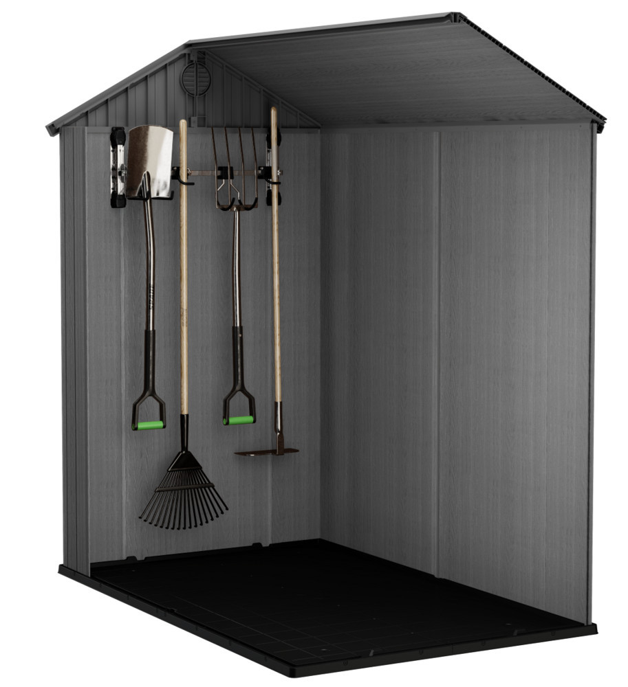 A tartó kompatibilis az összes KETER kerti házzal (a Factor sorozat kivételével), és maximális teherbírása 36 kg, így széles körű szerszámok felfüggesztésére alkalmas – minden kampó egyenként akár 9 kg-ot is elbír.