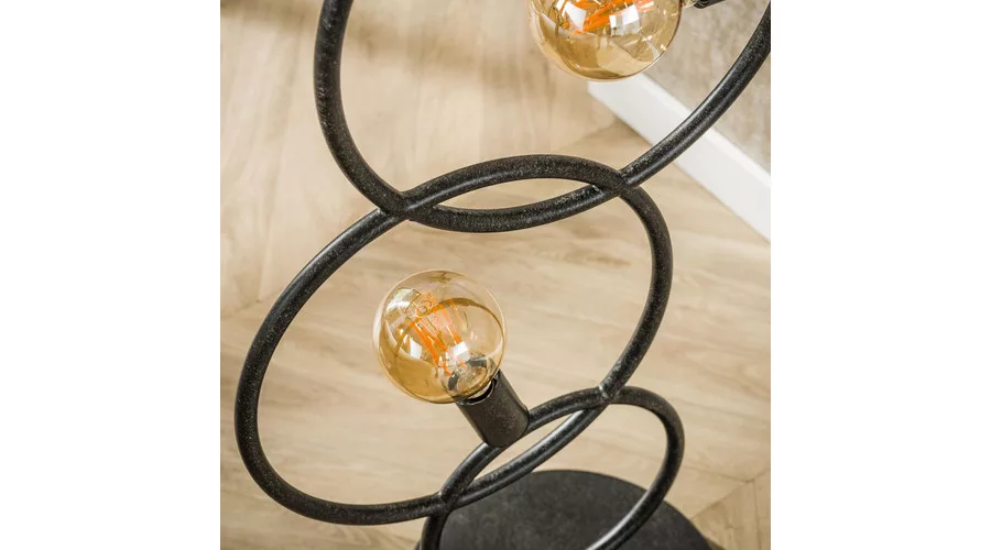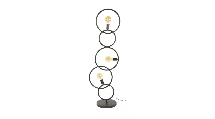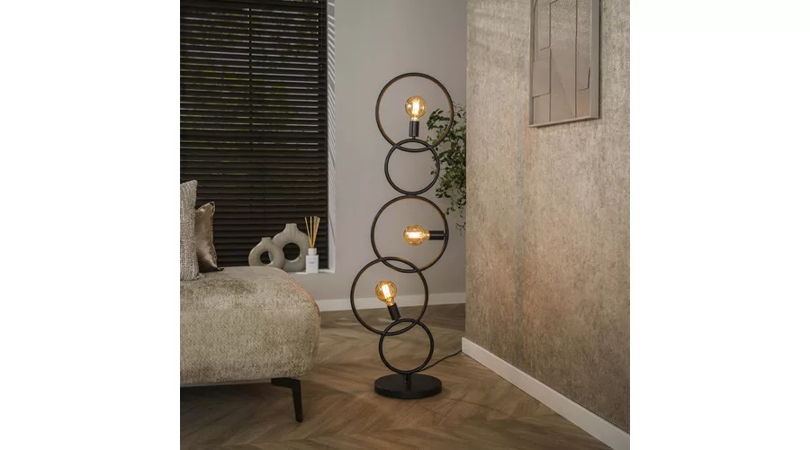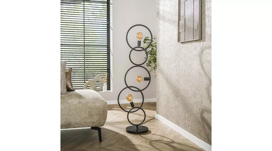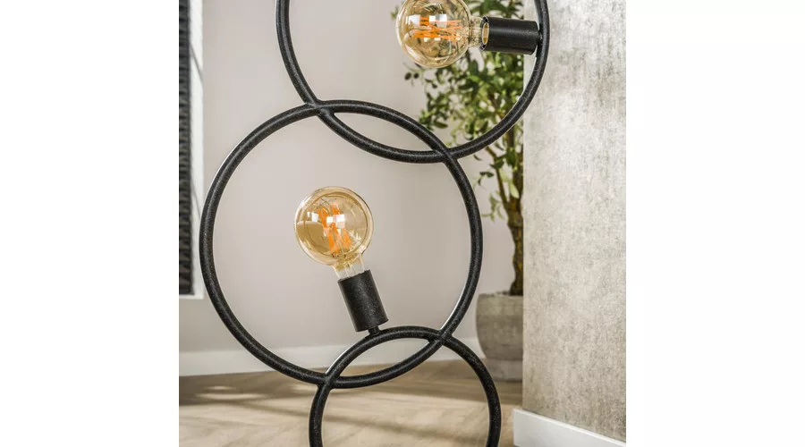 A LOOP állólámpa fém kivitelű, mélyfekete színben modern, grafikus stílust kölcsönöz a térnek. A lámpa több, különböző magasságú fém hurkot tartalmaz, amelyek együtt játékos vonaljátékot hoznak létre, miközben a három fényforrás kreatívan oszlik el a konstrukción. Ez az állólámpa ideális választás nappaliba, hálószobába vagy modern enteriőrökbe, ahol a stílusos és dekoratív világítás kiemelt szerepet kap. Az optimális fényhatás érdekében LED izzó használata javasolt. A LOOP állólámpa a LOOP lámpacsalád része, így könnyen kombinálható a kollekció asztali és függesztett lámpáival az egységes enteriőr kialakításához.