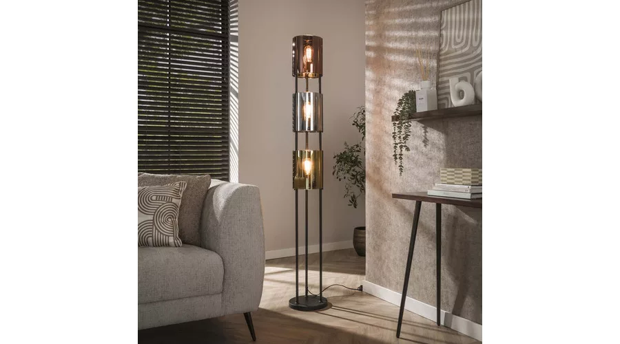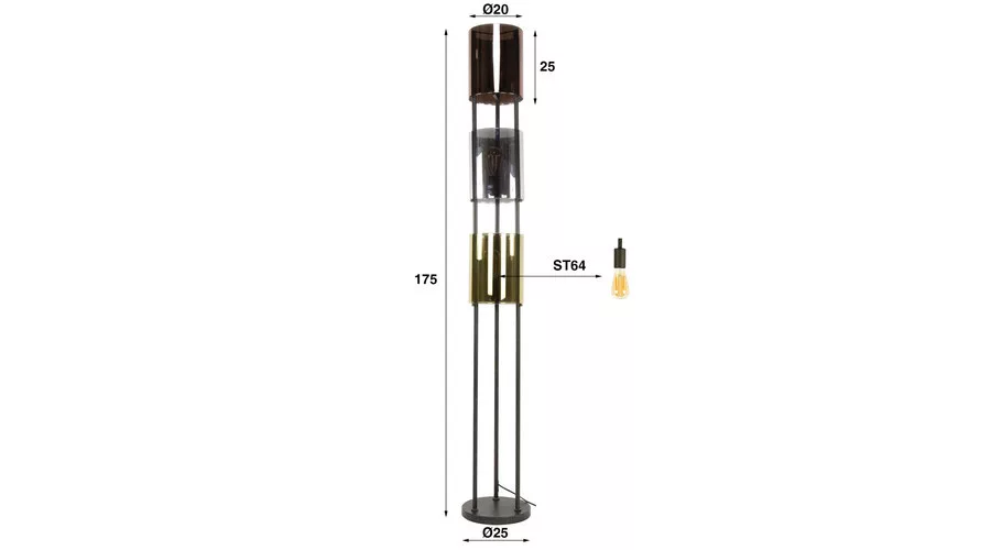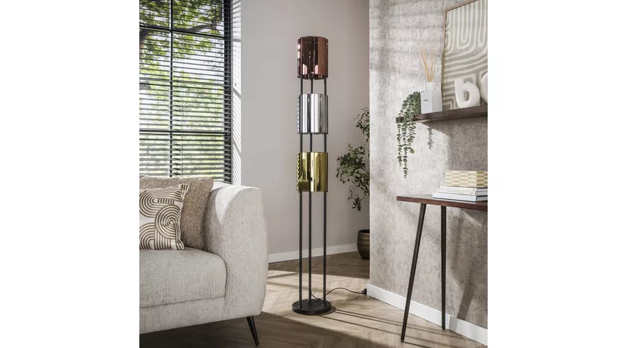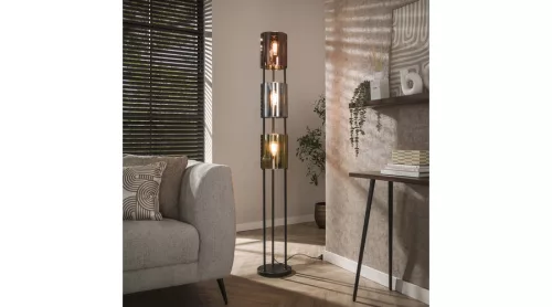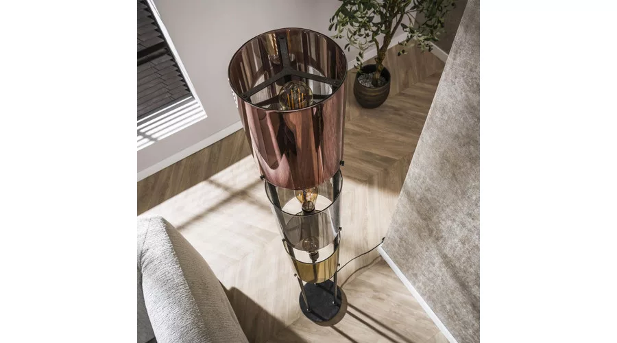 A LUCENTE állólámpa három üveg búrával rendelkezik réz, ezüst és arany árnyalatban, amelyek elegáns, látványos megjelenést kölcsönöznek a lámpának. A lámpatest sarki fekete felületű, amely modern, karakteres kontrasztot teremt a meleg és fényes üvegfelületekkel. A különböző színű búrák harmonikus összhatást adnak, miközben hangulatos, jól adagolt megvilágítást biztosítanak a térben. A tökéletes fényélmény érdekében LED izzó használata ajánlott.