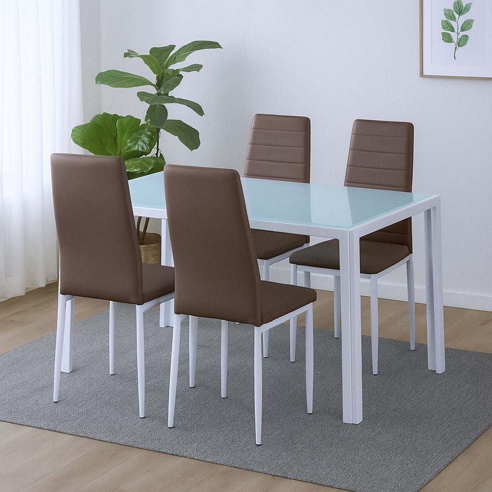 Liana 4+1 étkezőgarnitúra – Modern stílus barna székekkel és edzett üvegasztallal