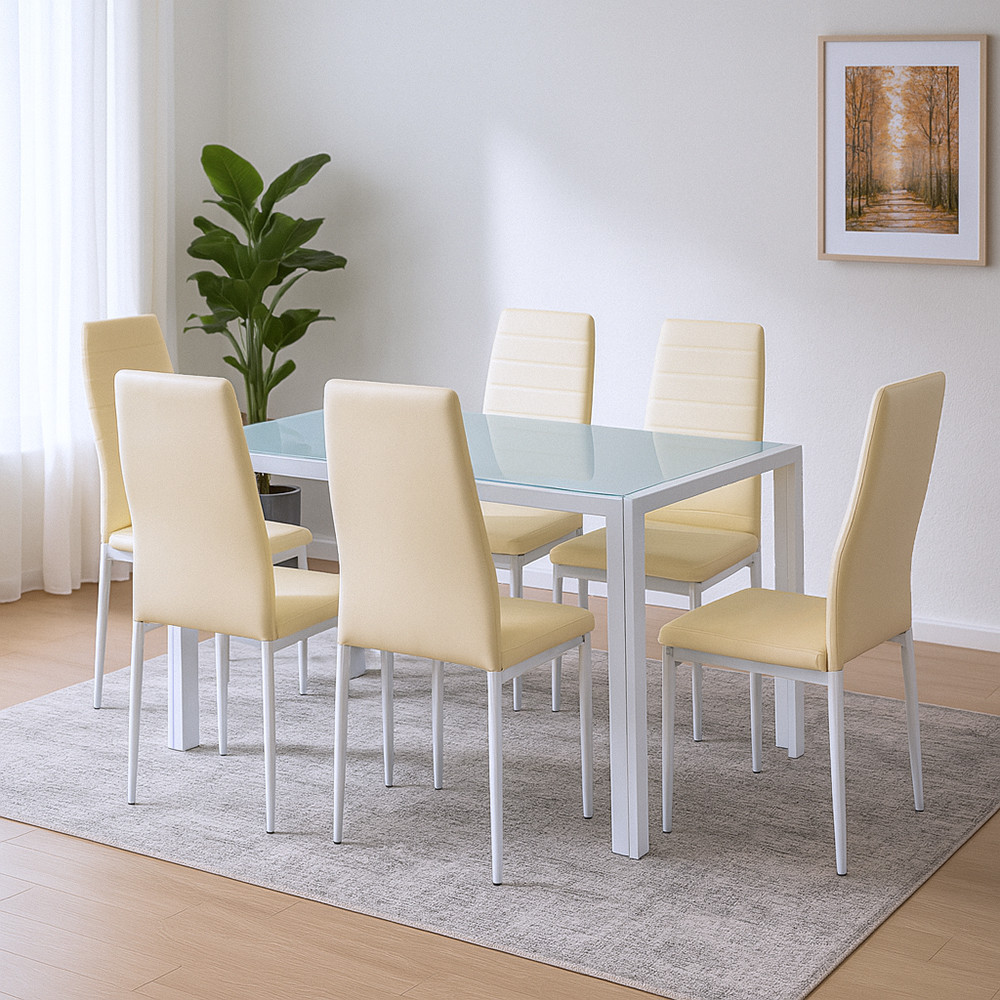 Liana 6+1 étkezőgarnitúra – Modern stílus bézs székekkel és edzett üvegasztallal