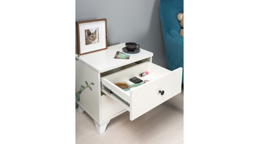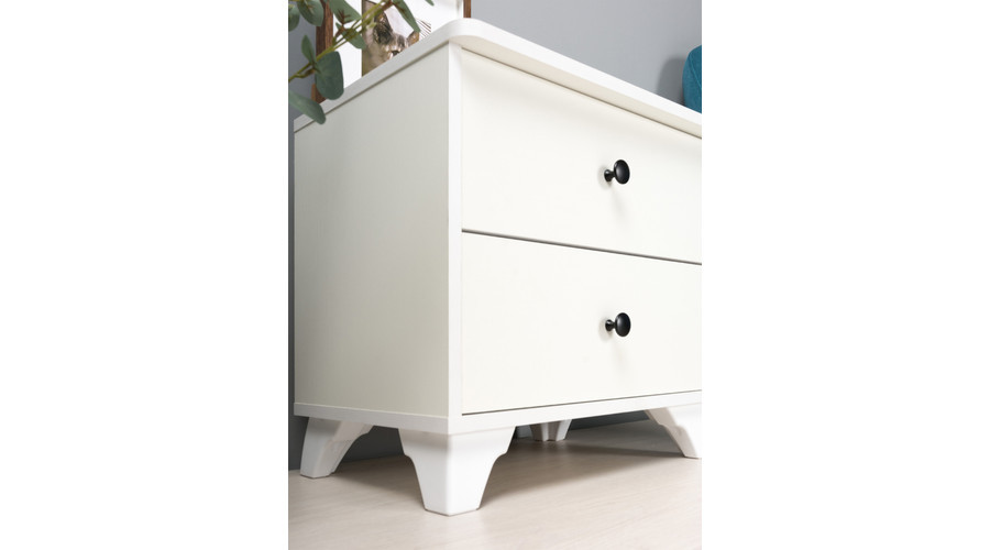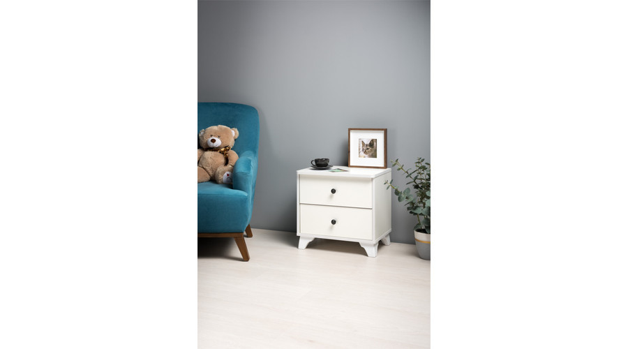 A termék masszív szerkezete és időtálló kialakítása garantálja a hosszú távú használatot. A két kihúzható fiók nemcsak praktikus tárolóhelyet biztosít, hanem hozzájárul a rendezettség fenntartásához is az ágy mellett. Az MDF-lap anyag könnyen tisztán tartható és modern megjelenést kölcsönöz az éjjeli szekrénynek.