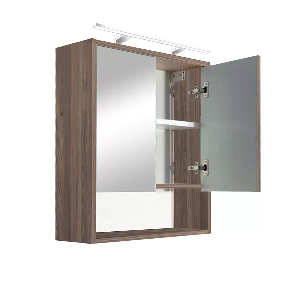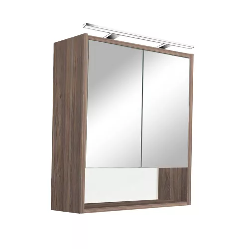 A fürdőszoba bútor tágas pakoló résszel rendelkezik ahol kényelmesen elférnek a fürdőszobai pipere eszközök. A szekrényben 2 polc található. Kompakt kialakítása miatt kisebb fürdőszobák berendezésére is alkalmas, például panel lakásokban. A termék magas minőségű, 18 mm-es bútorlapból készül és színben passzoló élzárókkal van ellátva. A fürdőszoba bútor felfüggesztett és álló kivitelben is kapható. Fontos megjegyezni, hogy a lámpa a szett részét nem tartalmazza.