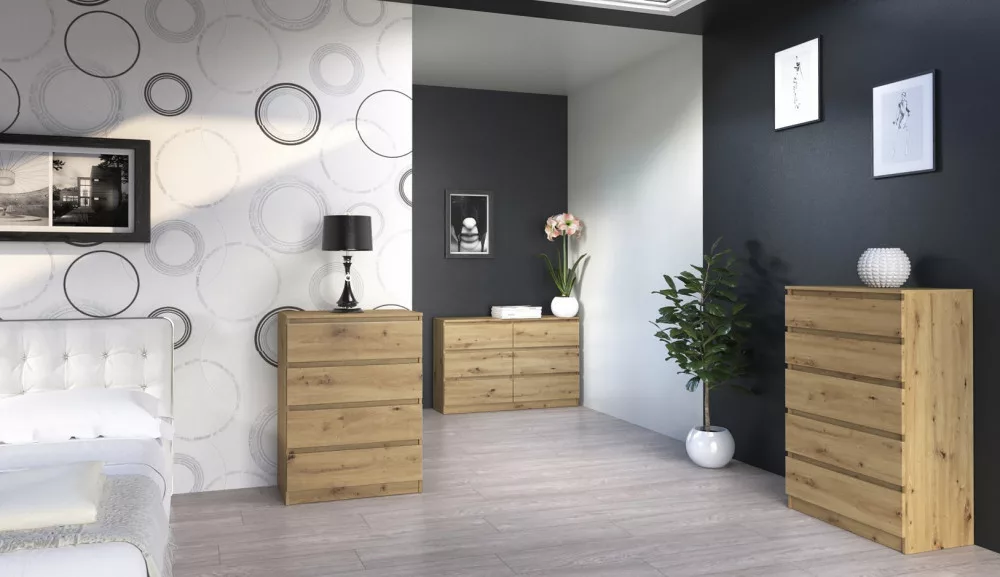 A komódok minden hálószoba és gardrób nélkülözhetetlen elemei. A ruháknak, dekorációs elemeknek, vagy akár a TV-nek is tökéletes helyet biztosít. A bútorok felületét puha ruhával kell megtisztítani. Kerüld az erős vegyszerek használatát!