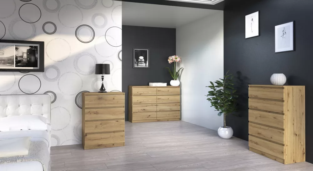 A komódok minden hálószoba és gardrób nélkülözhetetlen elemei. A ruháknak, dekorációs elemeknek, vagy akár a TV-nek is tökéletes helyet biztosít. A bútorok felületét puha ruhával kell megtisztítani. Kerüld az erős vegyszerek használatát!