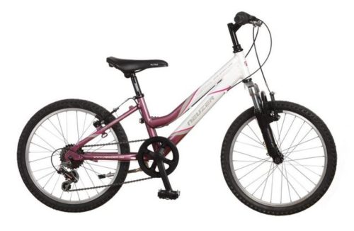 A Neuzer MISTRAL 20 LÁNY FEHÉR/MÁLYVA egy könnyű, 20 colos gyerek kerékpár, amely 18 sebességes váltóval rendelkezik a gördülékeny váltáshoz.