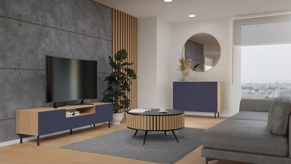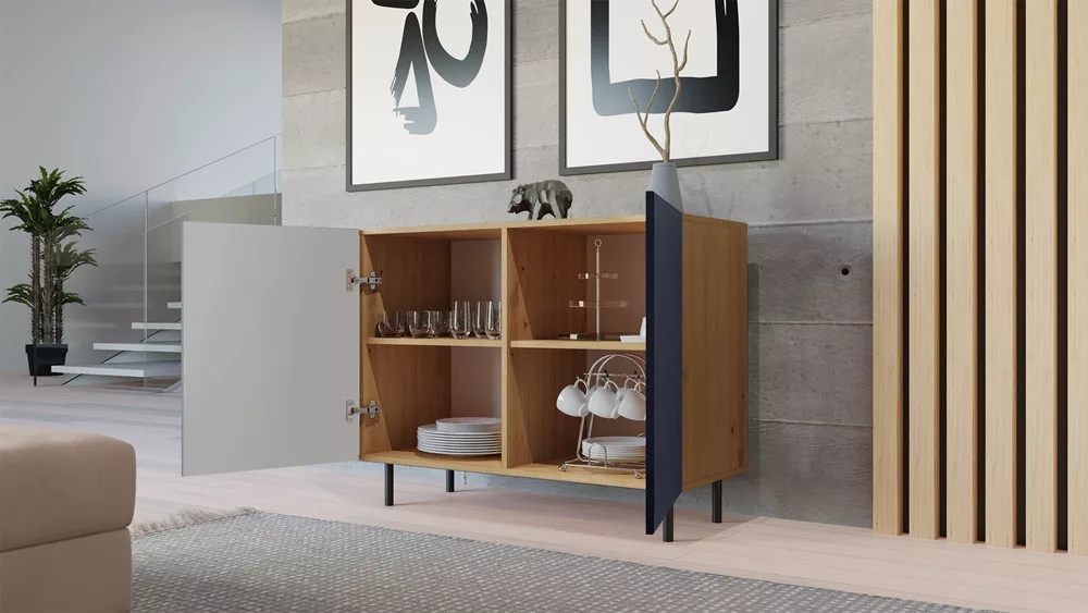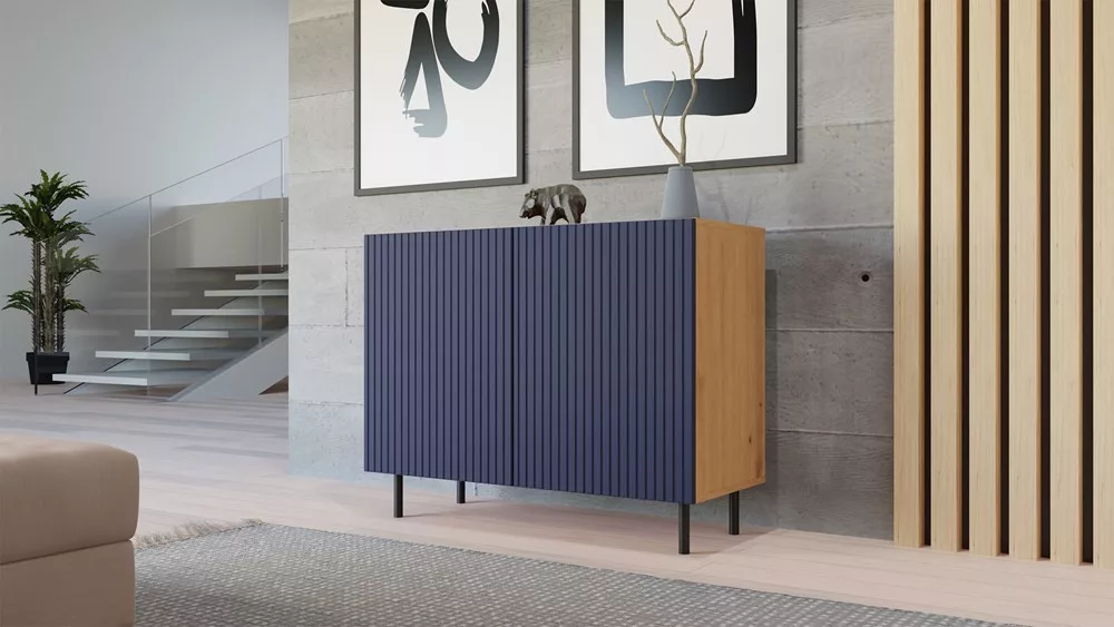 MIX Kama 2 komód (egyenes mintázat), tölgy-kék