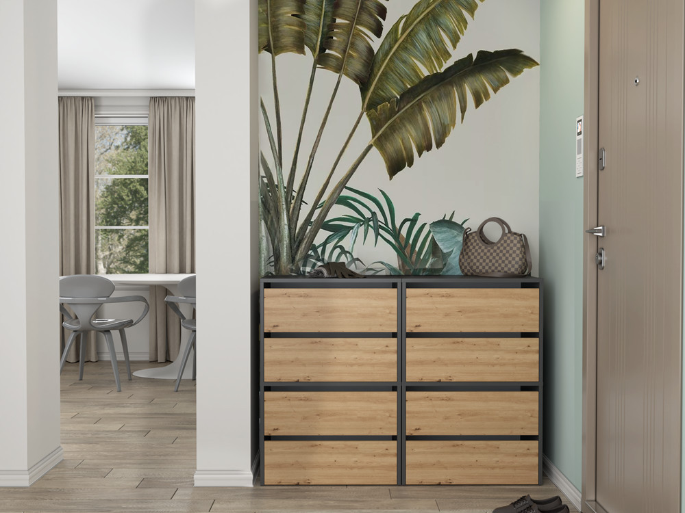 Az univerzális megjelenés megfelel mindenki elvárásainak, akik az egyszerűség és az elegancia kombinációját értékelik. A cipősszekrény biztosítja a helyet cipőidnek, emellett hangsúlyozza a modern, minimalista dizájnt.