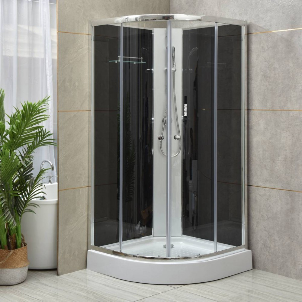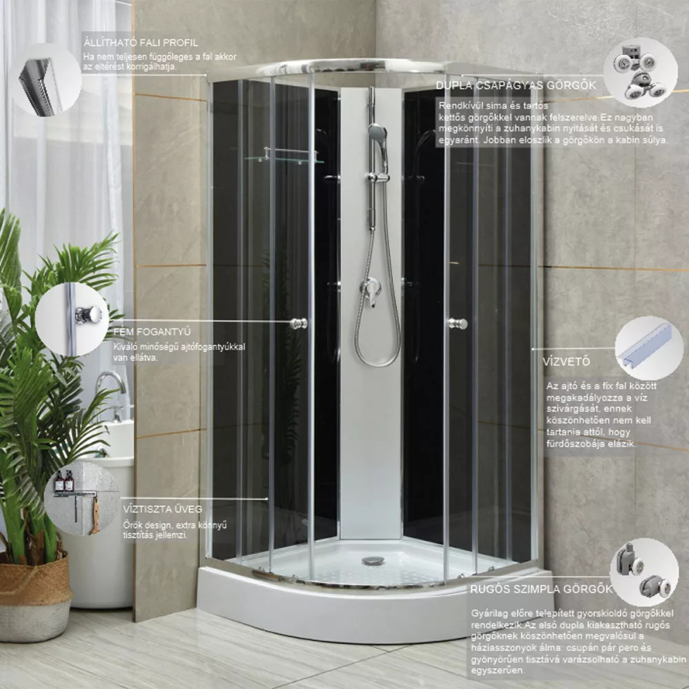 Marco Black II 90x90 cm íves fekete hátfalas zuhanykabin zuhanytálcával